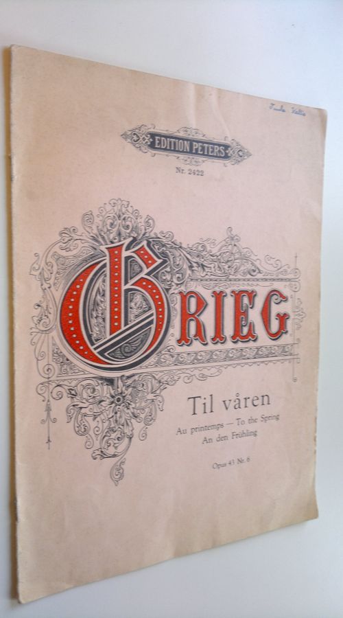 Edvard Grieg : Til våren : Au prinjtemps - To the spring - An den fruhling : Opus 43 Nr. 6