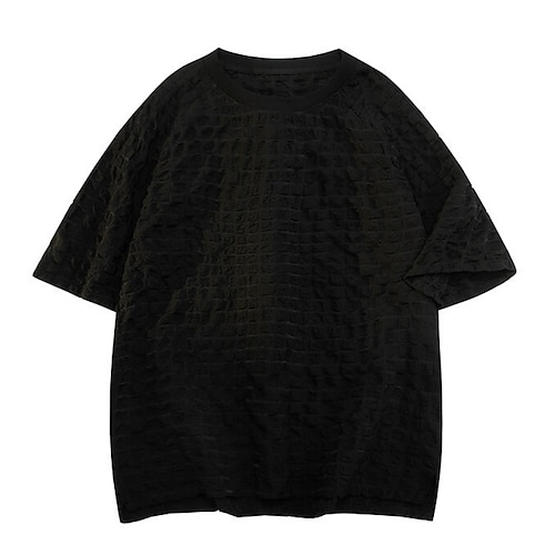 Per uomo Maglietta Camicia a Maniche Corte Manica Corta Il giro Estate Primavera Tinta unica Streetwear Elegante Tempo libero Jacquard Quotidiano All'aperto Vacanza Bianco Nero Maglietta Top per Uomo