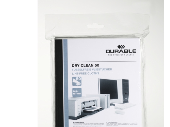 Durable 5734, Udstyrsrensning tørklud, Fiber, Hvid, 145 mm, 197 mm, 50 stk