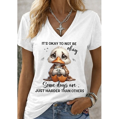 t-shirt da donna divertente umorismo citazioni stampa grafica 3D animale lettera casual manica corta scollo a V top regolari quotidiano uscire weekend bianco grigio bianco 2 estate primavera autunno