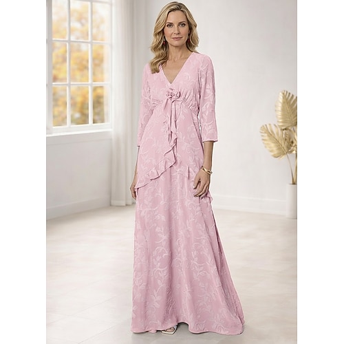 Linea ad A Lunghezza al pavimento Abito da invitata a nozze Abito Formale Abito svasato Abito da cerimonia per signora Manica 3/4 Scollo a V Elegante Vintage Pastello Formale Chiffon Jacquard con