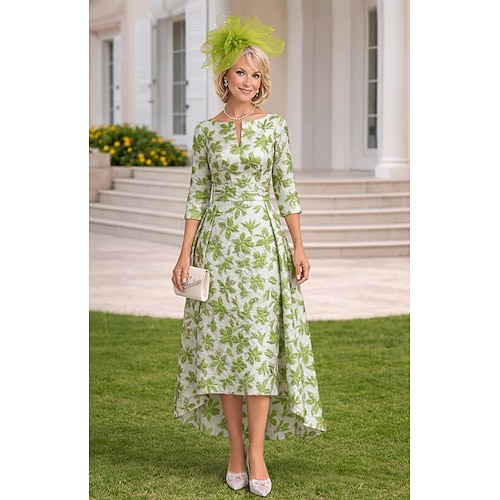 Linea ad A Abito alto-basso Lunghezza Tè Vestito da Festa Abito da Cocktail Abito da invitata a nozze Abito da cerimonia per signora Manica 3/4 Scollo a V Scollo a Barca Elegante Vintage Formale