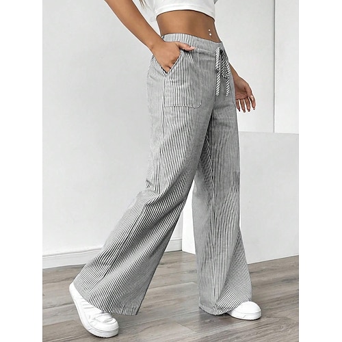 Per donna Gamba larga Chinos Casual Lunghezza intera Naturale Tinta a nodi Gamba larga Coulisse Comodo Traspirabilità Casual Quotidiano Rosso Blu Azzurro cielo Viola Primavera Autunno Vestibilit