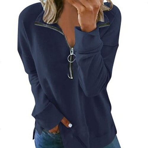 Per donna Felpa Pullover Semplice Elegante Caldo Moda Manica Lunga Bavero Top Regolari Casa Lavoro Streetwear Patchwork Zip a un quarto Blu azzurro cielo Nero Giallo Rosso Autunno Inverno