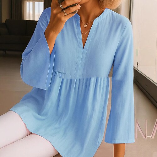 Per donna Blusa Semplice Elegante Vintage Manica 3/4 Manica a Campana Scollo a V Top Regolari Quotidiano Ferie Uscire Patchwork Rosa Azzurro cielo Viola Verde Estate Primavera Autunno