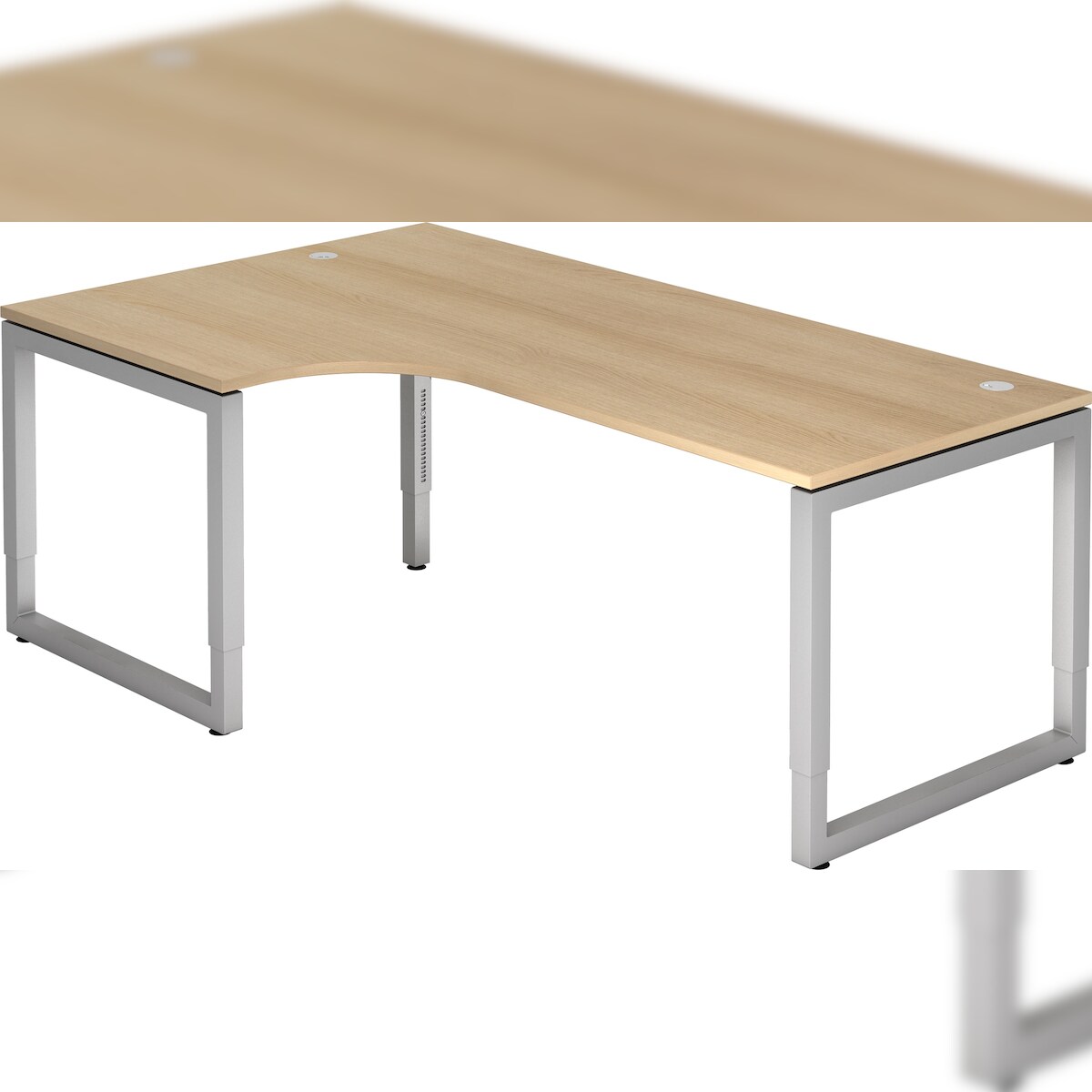 bümö höhenverstellbarer Eckschreibtisch R-Serie 200x120 cm in Eiche, Gestell in Silber - Schreibtisch L Form, großer Tisch für's Büro, Computertisch