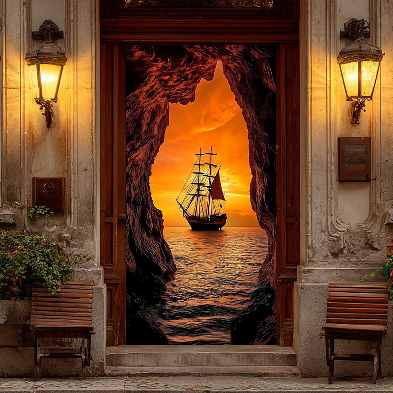 Door Cover Outdoor Banners Ocean Sailing Ship Aesthetic Mystic Bedroom Living Room Dorm Teens Room College Dorm Guys Man Cave Frat Bedroom Home Decor