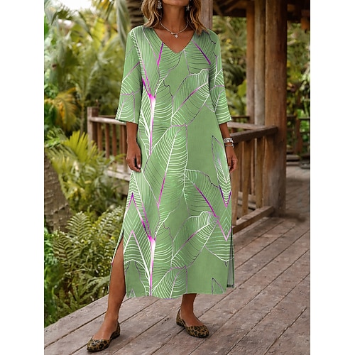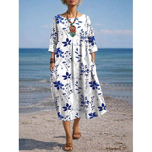 Per donna Abito maxi Abito a trapezio Casual Quotidiano Data Uscire Vestibilità comoda Floreale Grafico Manica 3/4 Girocollo Blu Rosso Viola Verde Estate Primavera