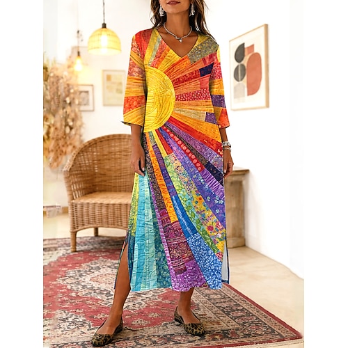 Per donna Abito maxi Abito Boho Abito a Tubino Vestito Estivo Abito da Spiaggia Bohemien Vacanza Etnico Spiaggia Ferie Data Vestibilità comoda Grafico Astratto Manica 3/4 Scollo a V Blu Azzurro cielo