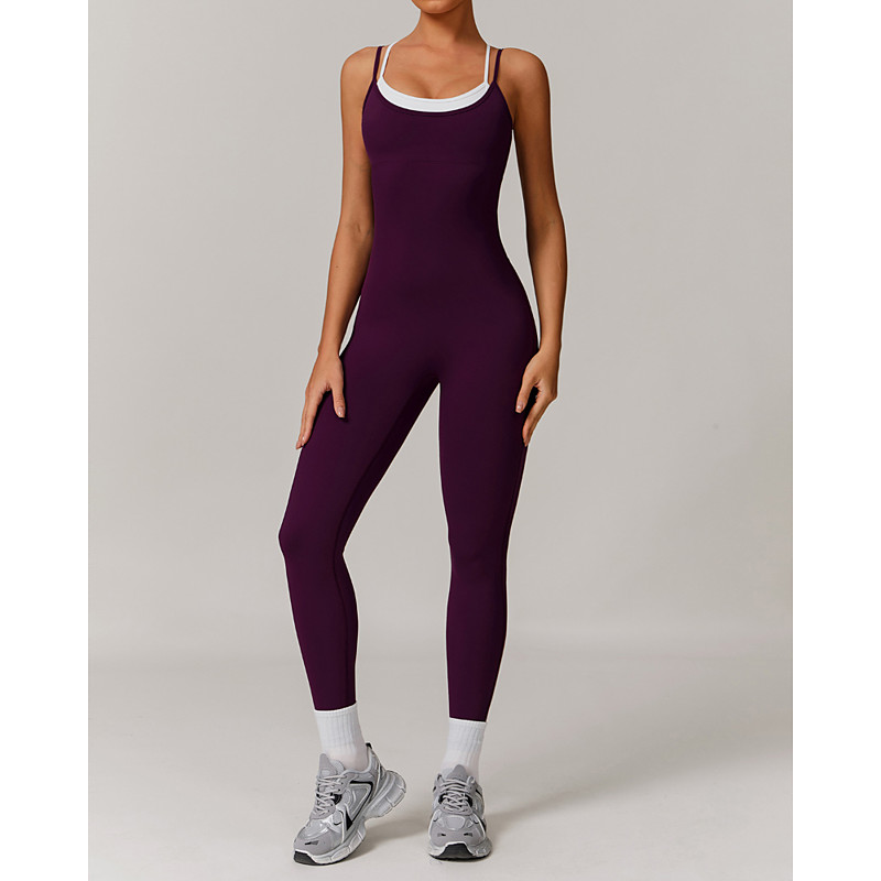 Women's Yoga Jumpsuit Patchwork 2 in 1 Spag Fitness Yoga Pants Color Block Amethyst Black Pink Sports Activewear Micro-elastic