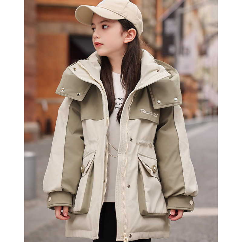 Kids Girls' Down Jacket Puffer Jacket Color Block Sports Pocket Keep Warm Windproof Outdoor Coat Outerwear 5 years Winter Pink Purple Khaki