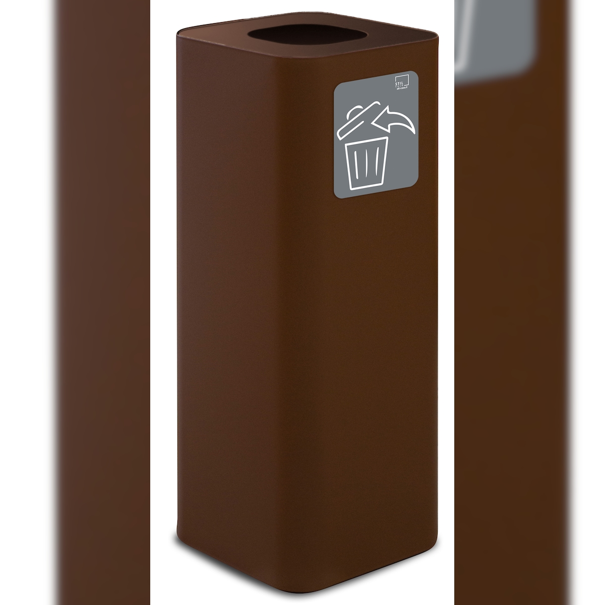 Stil Casa PURE Abfallbehälter, lackierter Stahl, 30x30xh. 80 cm, mit magnetischem Piktogramm, 60 Liter, corten.