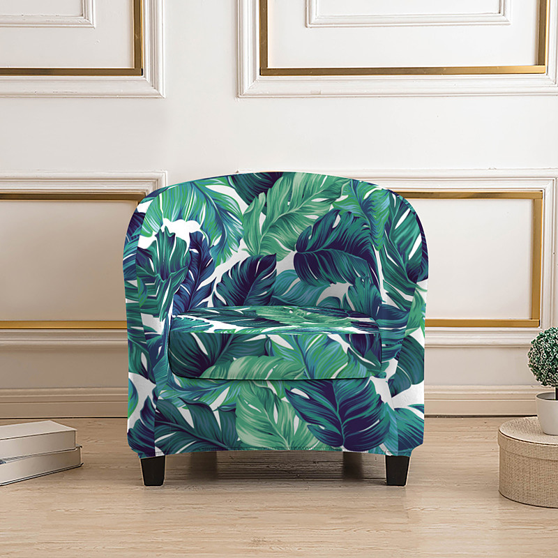 Club Chair Slipcover - Striped/Plants/Geometric Print Polyester Cover Fits Most Standard Armchairs Machine Washable