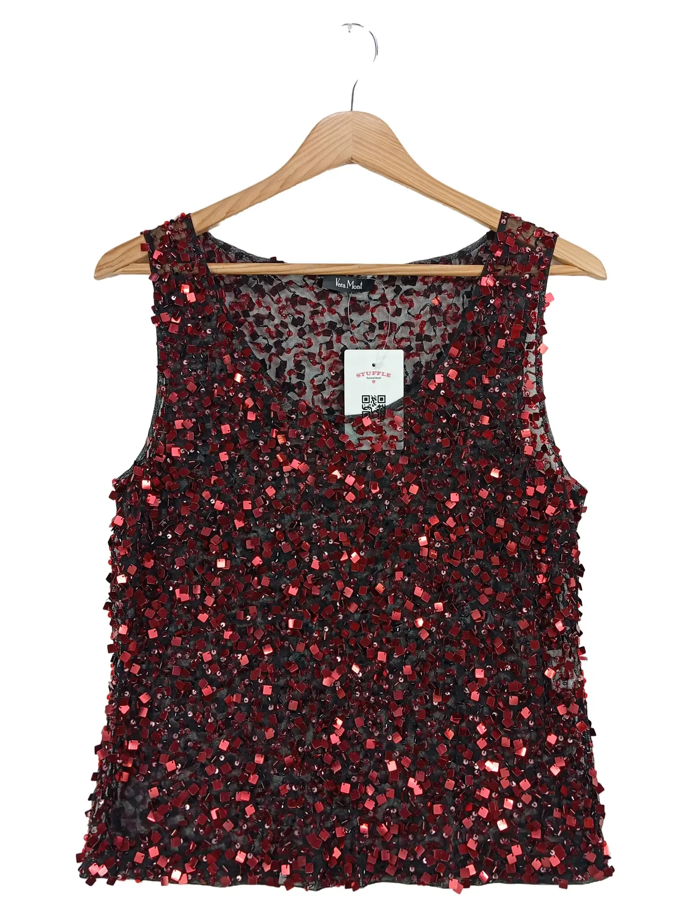 VERA MONT Top 40 rot schwarz Pailletten ärmellos