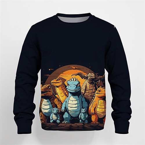 Jungen 3D Dinosaurier Sweatshirt Langarm Frühling Herbst Mode Basic Kinder 4-12 Jahre Rundhalsausschnitt Outdoor Lässig Täglich Normale Passform