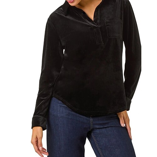 Per donna Velluto Blusa Semplice Vintage Elegante Manica Lunga Colletto a Camicia Top Regolari Quotidiano Ferie Uscire Bottoni Nero Vino Verde smeraldo Autunno
