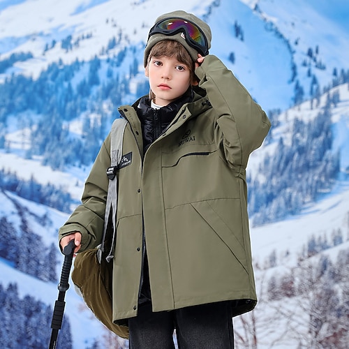 Kinder Mädchen Daunenjacke Outdoorjacke 3-in-1-Jacke Daunenjacke Buchstabe Sport Tasche WASSERDICHT warm halten Winddicht Outdoor Mantel Oberbekleidung 6-12 Y Winter Schwarz Rote Grün