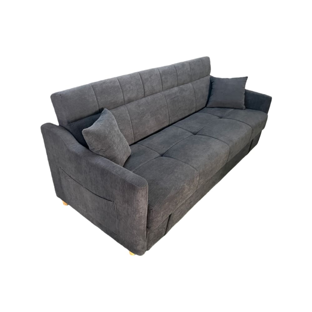 Divano angolare destro 5 posti in velluto, grigio scuro