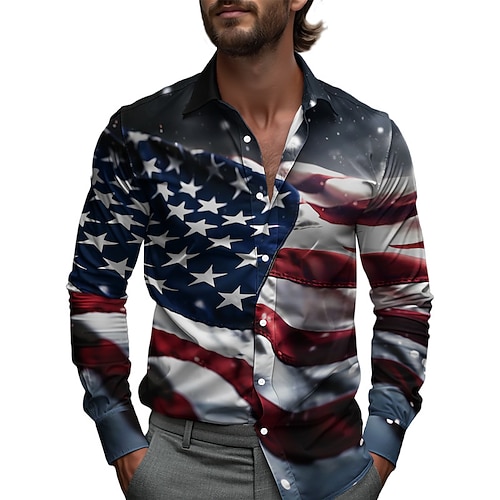 Per uomo Bandiera Americana Camicia Camicia casual Camicia da Spiaggia Manica Lunga Casual Confortevole Vacanza Streetwear Camicia hawaiana Primavera Autunno Bavero Stampato Blu reale Blu Blu