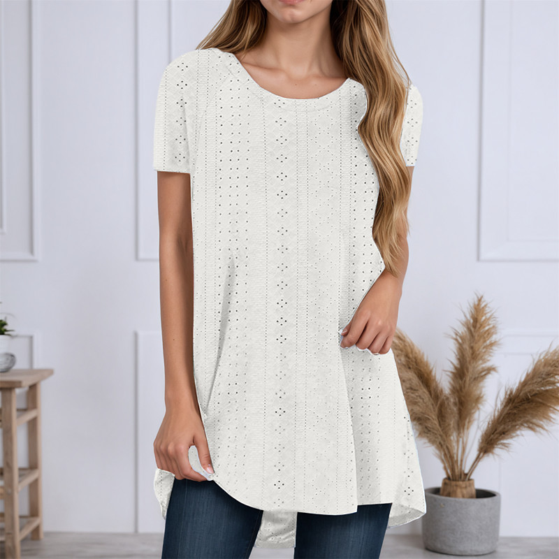 Women's Tunic Summer Tops Blouse Plain Stylish Casual Short Sleeve Crew Neck Long Tops Daily Eyelet Asymmetrical White Pink Purple Green Light Blue Summer Spring