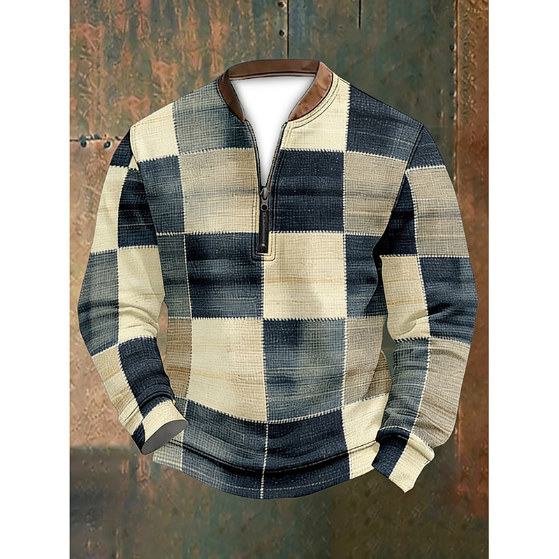 Men's Geometic Printing Sweatshirt Sweatshirts Long Sleeve Sweatshirt Quarter Zip Vintage Retro Print Holiday Going out Print Fall Winter