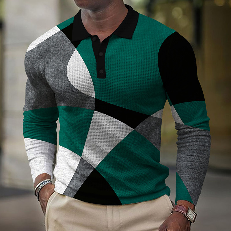 Men's Waffle Polo Shirts Golf Shirt Long Sleeve Polo Shirts Collared Shirts Casual Business Casual Dailywear Athleisure Buttons 3D Print Spring Fall Winter Black Red Blue