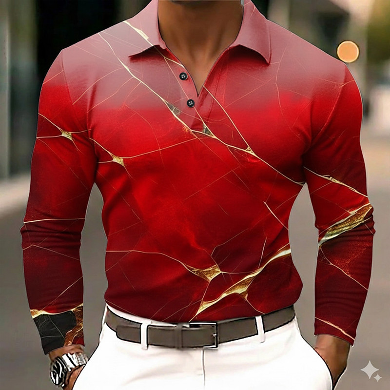 Men's Abstract Marble Polo Long Sleeve Polo Shirts Lapel Casual Street Athleisure Daily Wear 3D Print Buttons Spring Fall Winter Blue Red Purple