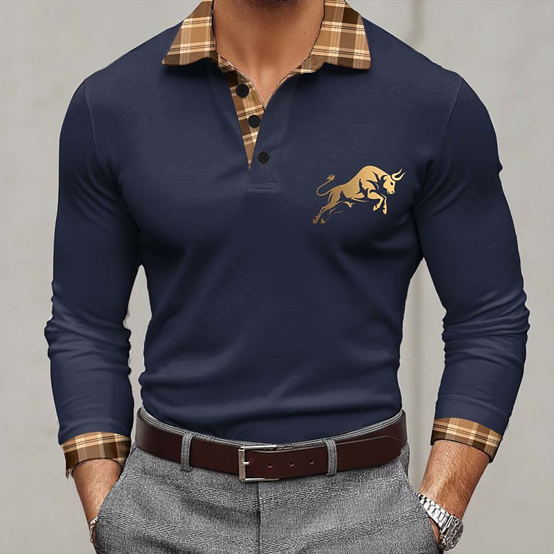 Men's Animal Polo Long Sleeve Polo Shirts Lapel Business Casual Outdoor Athleisure Daily Wear 3D Print Buttons Spring Fall Blue Black Red