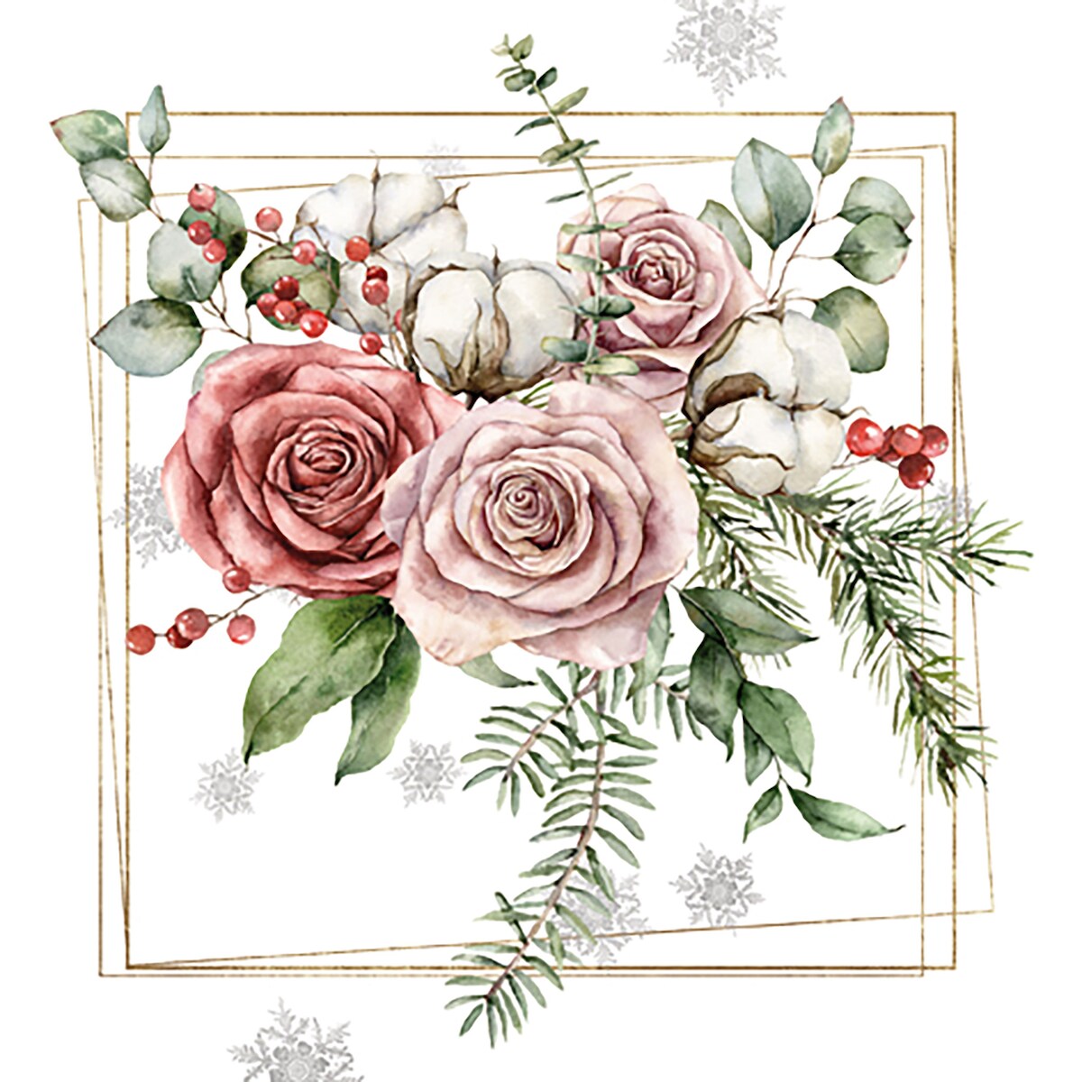 ti-flair 20 Servietten Papier 33x33cm 3-lagig hochwertige Einweg Papierservietten Weihnachtsservietten Winterstrauß Rosen Partyservietten Winter Weiß Rosa