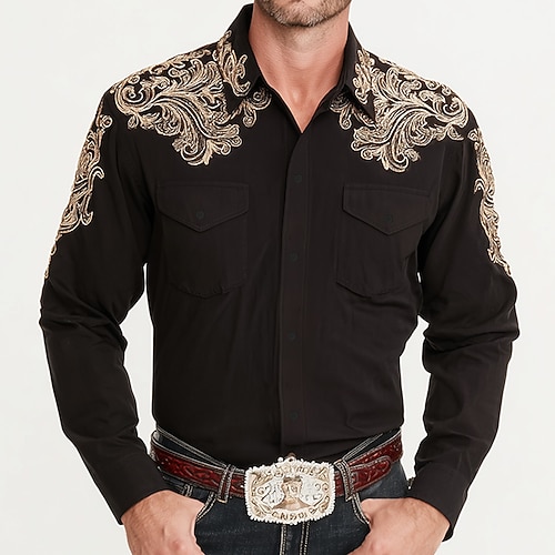 Per uomo Etnico Floreale intricato Fiori Camicia Camicia Western Camicia da cowboy Manica Lunga Vintage Retrò All'aperto Casuale Abbigliamento da lavoro Primavera Autunno Collo ripiegato Due tasche