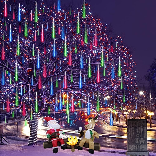 Catena luminosa a pioggia di meteoriti 2 in 1 da 30 cm 16 tubi, 384 perline a LED, per interni ed esterni, cortile, giardino, balcone, portico, grondaie, atmosfera da festival, decorazione, catena luminosa, bassa tensione, spina sicura