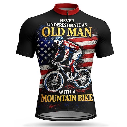 250° anniversario dell'America Giornata dell'indipendenza Giorno dell'Indipendenza americana Da uomo Maglia da Ciclismo Bandiera Americana Non sottovalutare mai un vecchio con una bicicletta Manica