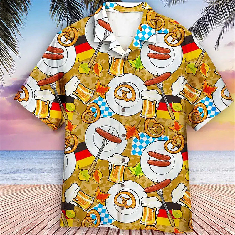 Bavarian Munich German Hawaiian Shirts Aloha Shirt Beer Sausage Pretzel Graphic for Men's Adults' 3D Print for Carnival Oktoberfest Beer Vacation Party