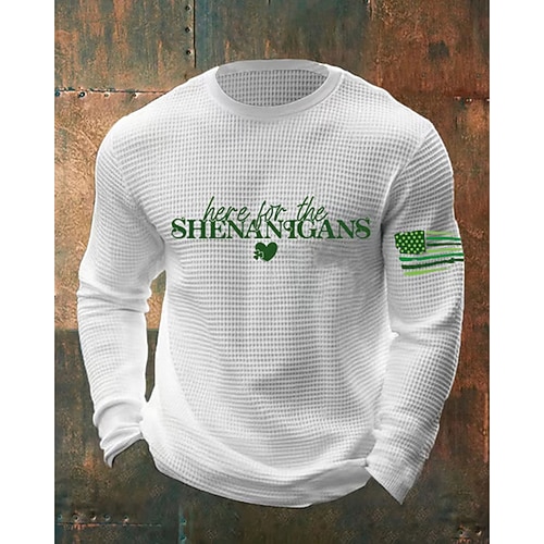 St. Patrick's Day St. Patrick St. Patricks Day Herren Kleeblatt Oktoberfest-Bier Waffelhemd T Shirt T-Shirt Langarm T-Shirt Rundhalsausschnitt Hemd Sport Mode Klassisch Täglich Urlaub Party Schwarz