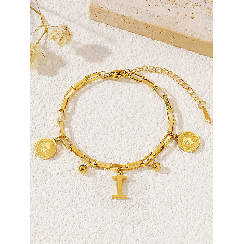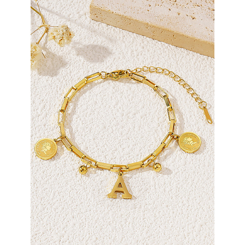 Women's Gold-Plated Alphabet Letter Bracelet with Coin and Ball Charms, Adjustable Chain, Stylish Christmas Gift for Her, Personalised Jewelry Accessory
