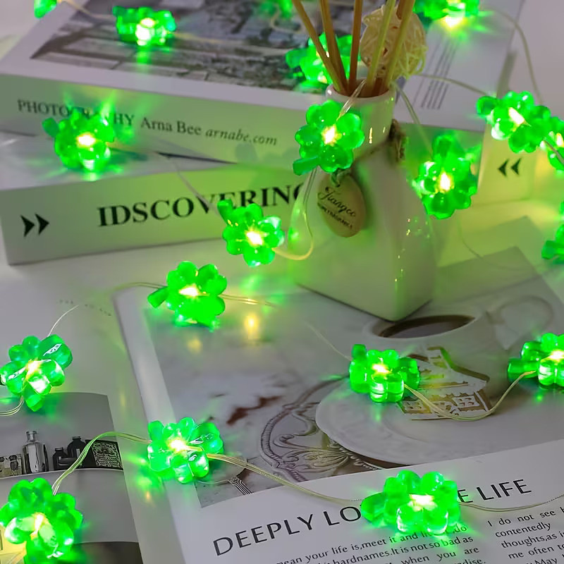 St. Patrick's Day Decorative Lights Green 10 Feet 30 LEDs Lucky Four-Leaf Clover Hat LED String Lights