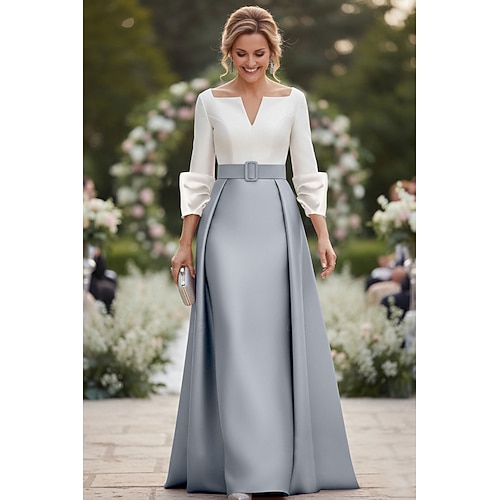 Linea ad A Tubino Colonna Lunghezza al pavimento Abito da invitata a nozze Abito Formale Abito da sera Abito da cerimonia per signora Manica 3/4 Scollo a V Elegante Formale Ospite di nozze