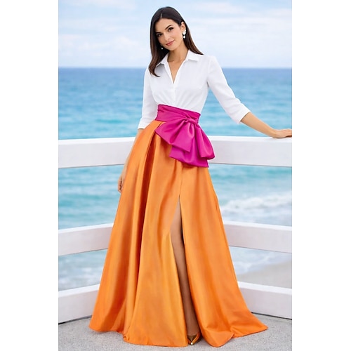 Linea ad A Lunghezza al pavimento Abito Derby Abito da Sera Da principessa Abito formale Elegante Spacco Alto Manica 3/4 Colletto a Camicia Matrimonio Formale Cintura / Fascia Raso con Fiocco/Fiocchi