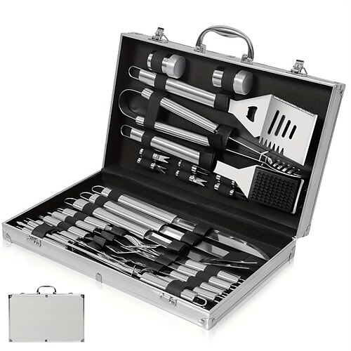 set di attrezzi per barbecue ad alta resistenza - accessori in acciaio inossidabile 5/18/26, custodia in alluminio, kit completo per esterni per uomo donne