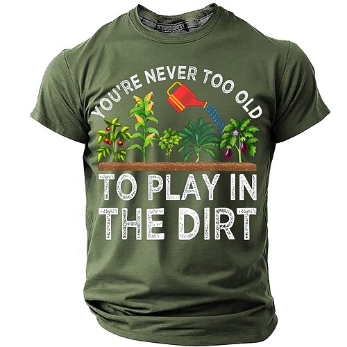 Vatertagsgeschenk für Herren: „Man ist nie zu alt, um im Dreck zu spielen" – Gartenarbeit mit Gießkanne – Lustiges Gärtnergeschenk – Grafik-T-Shirt – Normale Passform – Outdoor-Designerbekleidung –