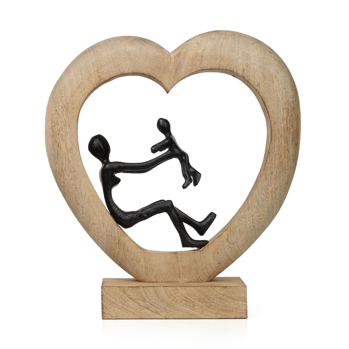 Moritz Dekofigur Mother’s Love Schwarz 30,5 cm aus Mangoholz und Aluminium Skulptur Mutter mit Kind im Herz Symbol für Liebe Familie und Geborgenheit