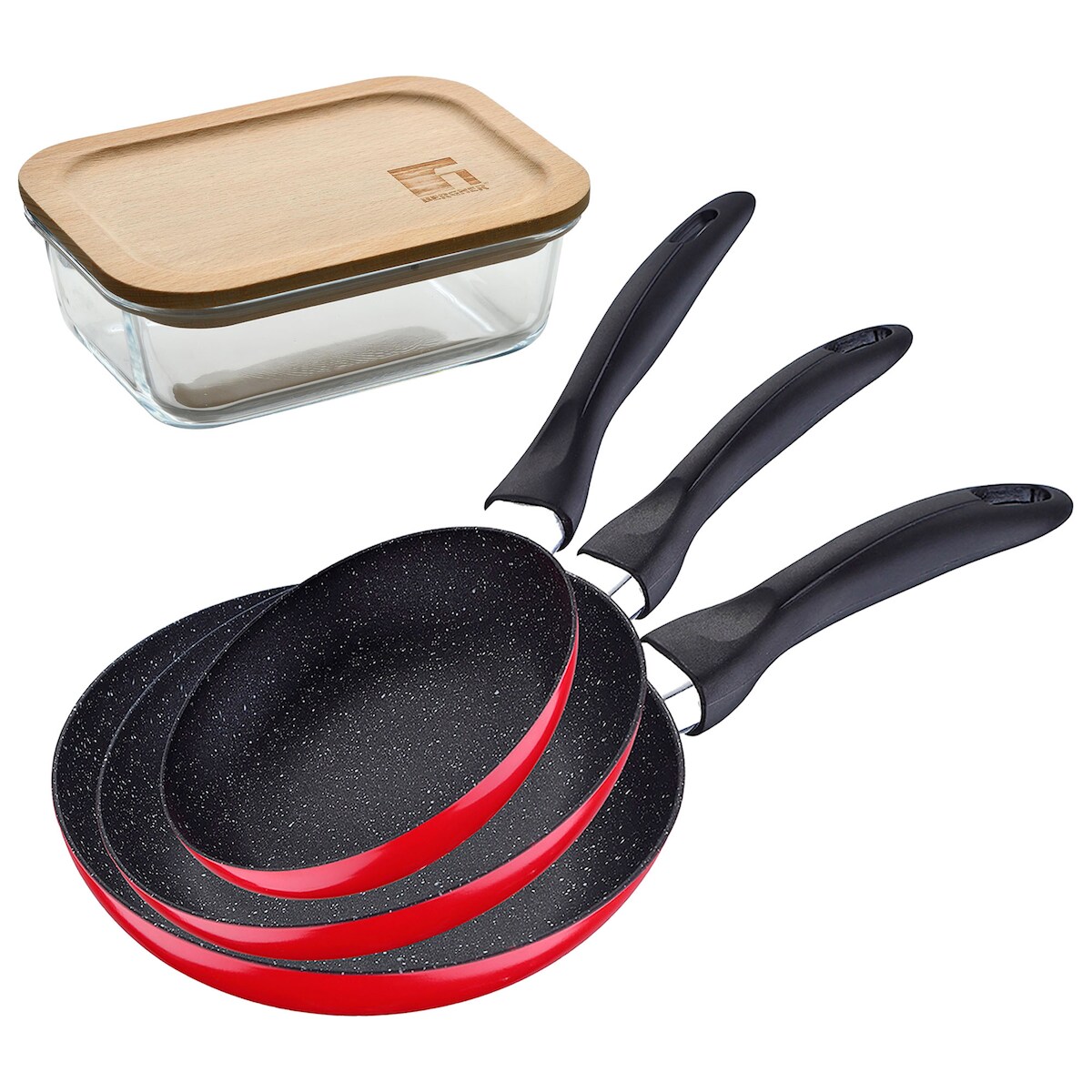 BERGNER - Set aus 3 Pfannen mit Marmorbeschichtung Ø16/Ø20/Ø24 cm Vorratsglas 650 ml aus Borosilikatglas NATURALLY