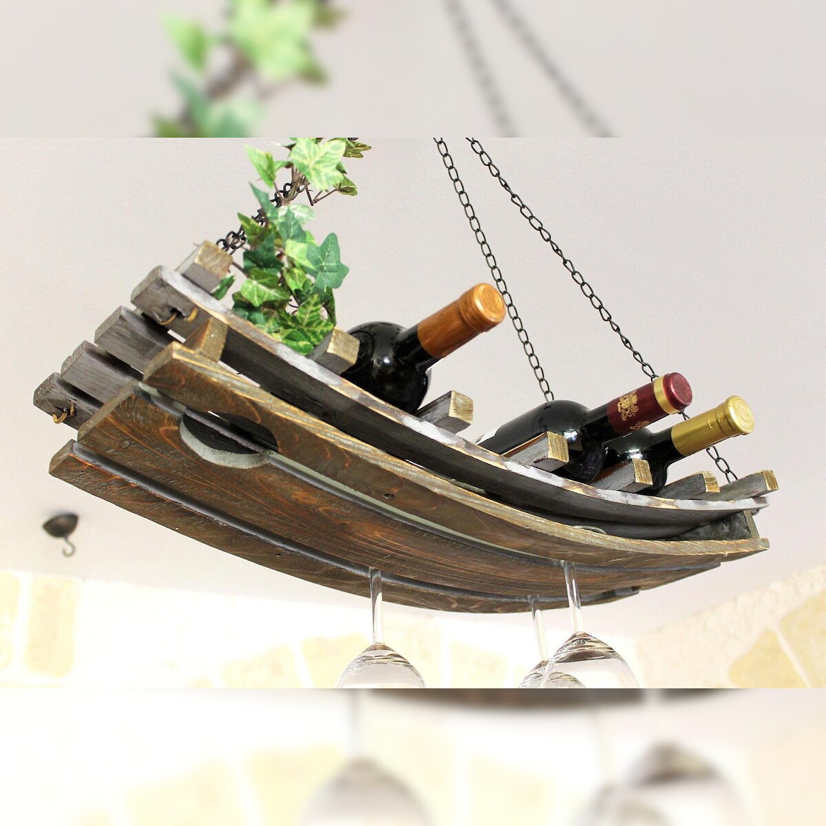 Weinregal 5089 Deckenregal aus Holz 65 cm Hängeregal Flaschenhalter Flaschenregal