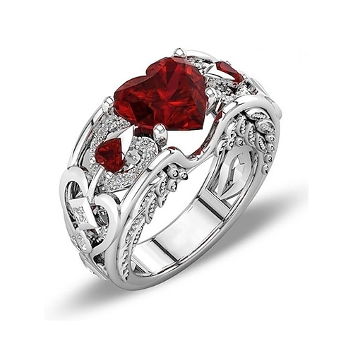 Damenring mit rotem herzförmigem Edelstein und versilbertem Band – eleganter Schmuck als Weihnachtsgeschenk oder für festliche Anlässe