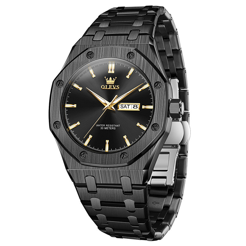 OLEVS Men Quartz Watch Minimalist Fashion Casual Business Luminous Calendar Date Week Waterproof Steel Watch