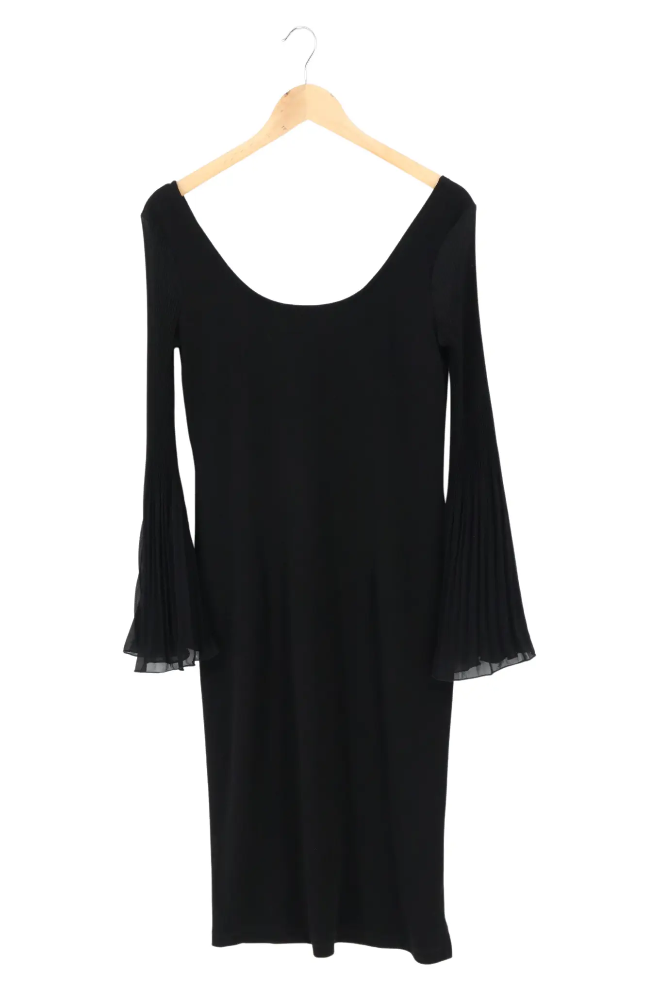 Festliches Damen Kleid Schwarz Gr. 38 Midi Plisseeärmel