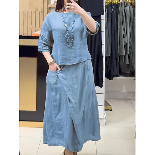 Per donna Set di biancheria in cotone Set di gonne Manica Lunga Girocollo Tinta unica Elegante Moda Streetwear Casuale Quotidiano All'aperto Nero Bianco Giallo Primavera Estate Vestibilità comoda