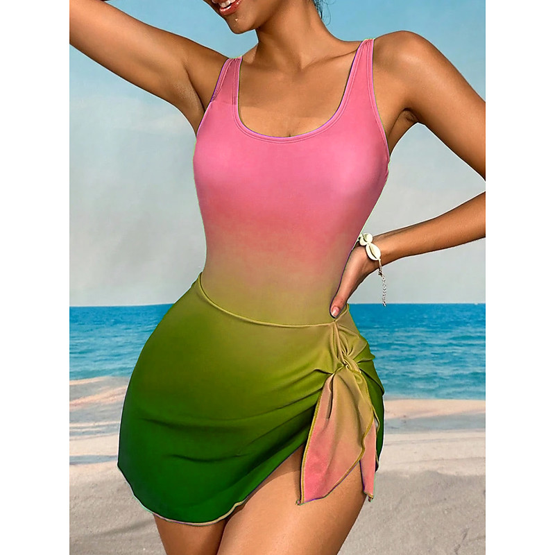 Women's Swimwear One Piece Monokini High Cut Swimsuit Tummy Control High Waist Slim Backless Vacation Vintage Ombre Graphic U Neck Sleeveless Bathing Suits
