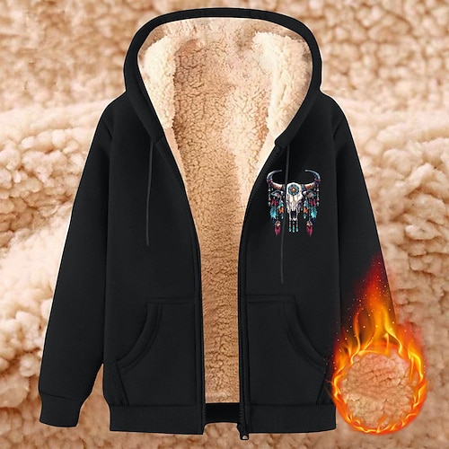 Per uomo Felpa con cappuccio a zip intera Felpa con cappuccio e zip Giacca in Pile Felpa con cappuccio in pile Nero Vino Blu Marrone Verde Con Cappuccio Mucca Semplice Stampe Grafiche Cerniera Tasca