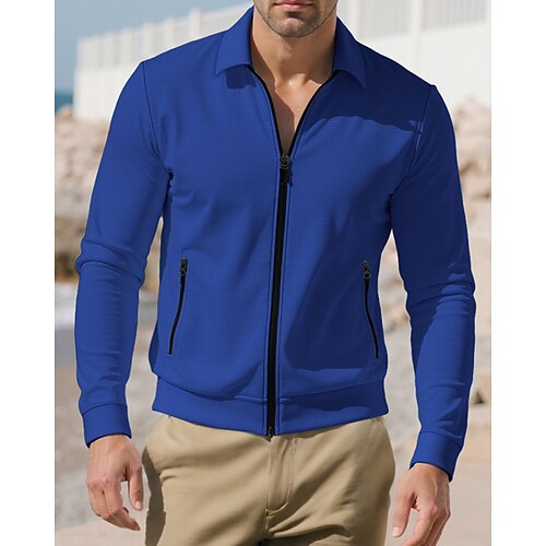 Per uomo Giacca Leggera Giacca a nido d'ape Giacca Casual Vacanza Quotidiano Traspirante Tasca Primavera Autunno Semplice Moda Classico Bavero Regolare Nero Bianco Blu reale Cachi Grigio Giacca
